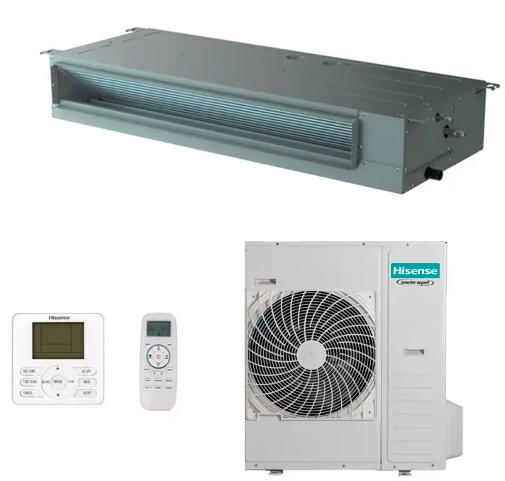El modelo Hisense ADT52 ofrece una climatización potente, eficiente y discreta, ideal para grandes estancias o espacios comerciales que requieren un control preciso del ambiente sin afectar la estética del entorno. Su instalación por conductos permite distribuir el aire de forma uniforme y silenciosa.