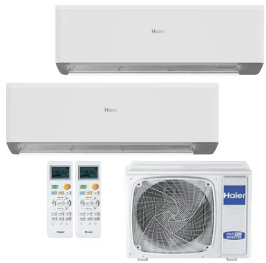 El aire acondicionado 2x1 Haier Geos R+ Wifi 35-25 es una solución versátil para climatizar dos espacios distintos con una sola unidad exterior. Incorpora una unidad de 3.5 kW ,ideal para estancias medianas como salones o comedores; y otra de 2.5 kW ,perfecta para dormitorios u oficinas pequeñas.
