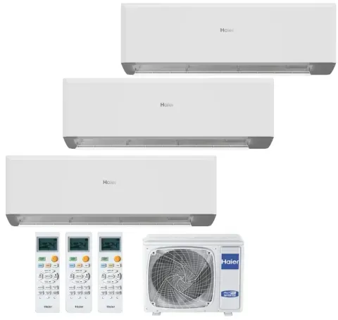 El aire acondicionado 3x1 Haier Geos R+ Wifi 35-25-25 está diseñado para ofrecer un alto rendimiento en climatización de tres espacios simultáneamente, ideal para hogares o pequeñas oficinas que requieren eficiencia, confort y tecnología avanzada.