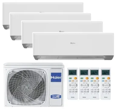 El aire acondicionado 4x1 Haier Geos R+ Wifi 25-25-25-25 es perfecto para climatizar hasta cuatro estancias con una única unidad exterior. Ideal para viviendas, oficinas o negocios que buscan eficiencia energética, diseño discreto y control independiente en cada habitación.
