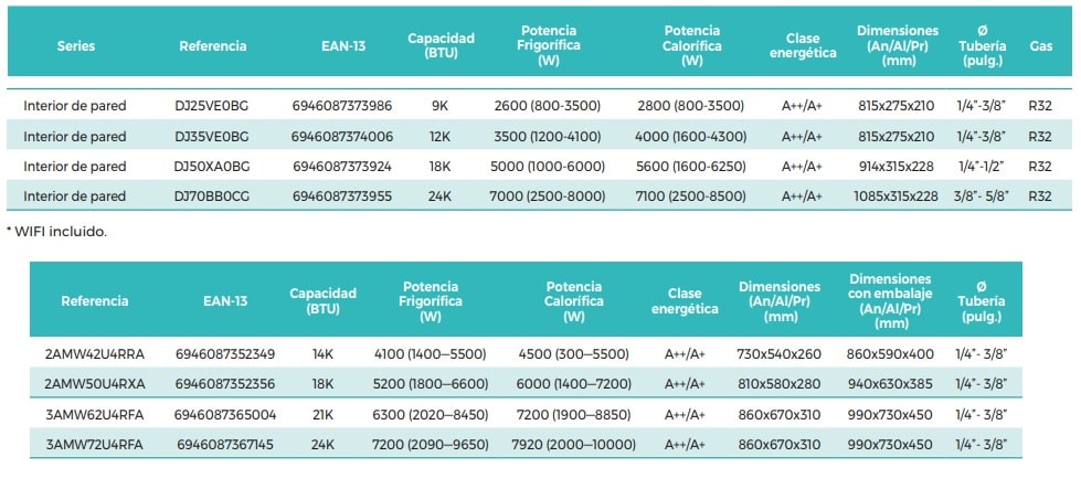 - Clasificación energética: A+++ en refrigeración / A++ en calefacción.