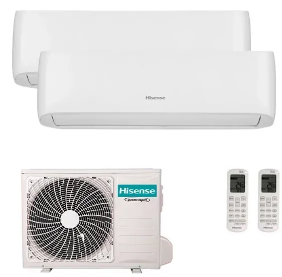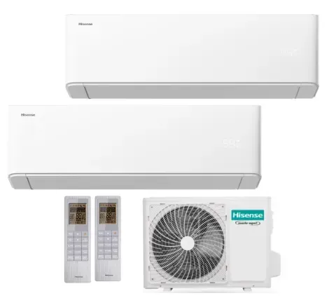El aire acondicionado 2x1 Hisense Energy Pro X 35 – 25 es una solución eficiente para climatizar dos estancias (1 estancia de hasta 35 m² y otra de hasta 25 m²) con una única unidad exterior. Esta diseñado para ofrecer máxima eficiencia energética, confort y tecnología avanzada en climatización.